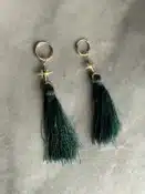 From left to right: Celeste Studs | Azulon Blue Topaz Pendant |Celeste Green Tassel Earrings