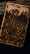 From left to right: Hearthfire Ritual Oil | Krampus Protection Spell Jar | Wooden Tarot Cards